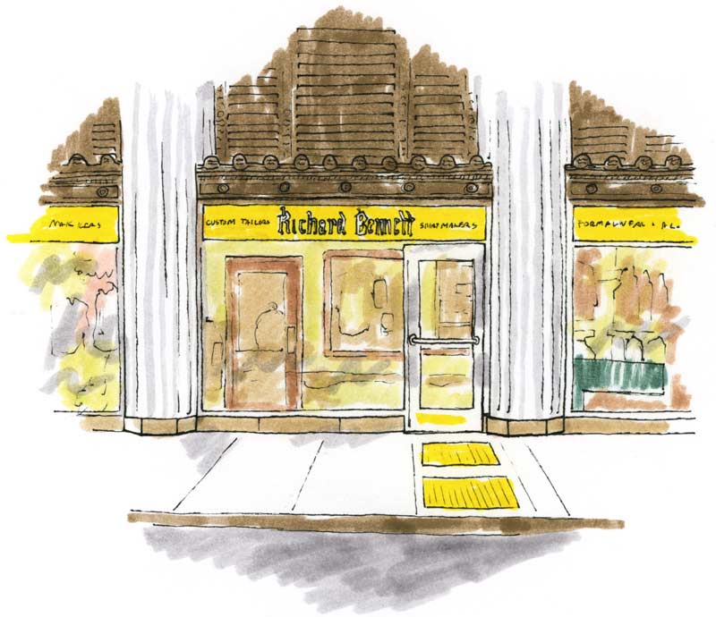 Karoll combined elements from the businesses he acquired to create a unified story of heritage and a connection to the old-world tailors of Savile Row and Milan. He chose the name Richard Bennett because it was the best-known brand. The store’s canonical founding year, 1929, comes from DeBartolo Custom Tailors, a family-owned business whose clients included former Chicago Mayor Harold Washington.