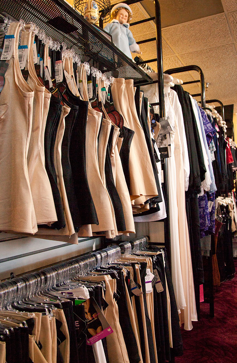 A few years ago, a woman walked into Tina’s Closet in need of a well-fitting bra. Karakourtis thought the customer was pregnant. In fact, the woman had a bust that sagged down to her waist, covering her midsection and giving her a rash where the skin chafed. After measuring the customer, Karakourtis split the seams of the largest bra she had and added extra fabric to the cups.