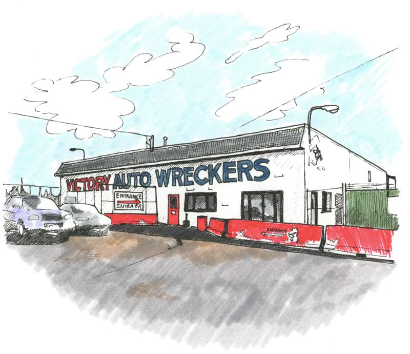 Thanks to recent upgrades, customers no longer have to stand in the mud when trying to peer under a car. Instead, vehicles are neatly arranged in elevated rows. Using Victory’s mobile app, customers can check the latest inventory and get notifications when specific makes and models are added. Kyle plans to install digital kiosks at the front counter so visitors can look up the availability and location of parts, like an online card catalog.