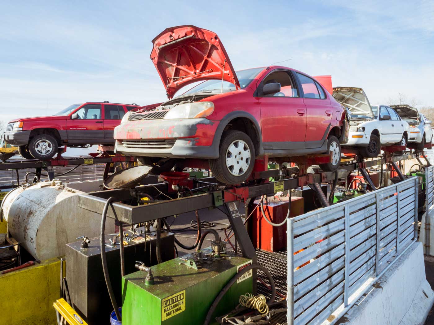 Over nearly seven decades, Victory has learned how to extract value from each step of dismantling the car. It filters leftover gas for use in tow trucks and employees’ personal vehicles; Kyle hasn’t been to a filling station in years. Oil from the autos fuels two heaters that warm up Victory’s building, and recycled antifreeze is sold at the counter for $5 a gallon. Specialized companies purchase the materials, like Freon, that Victory doesn’t process on-site.
