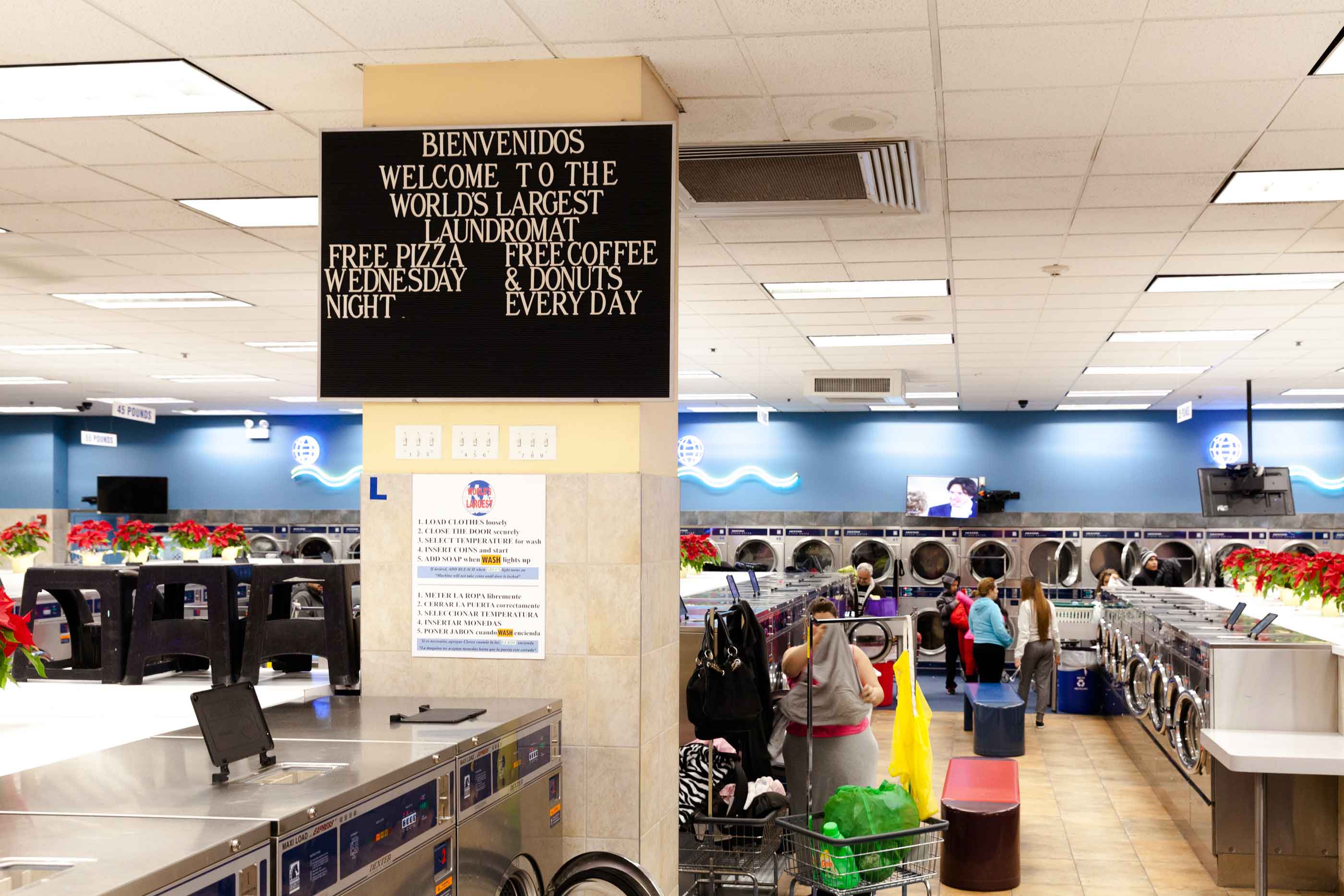 Weekends can be even busier, with customers carefully steering overflowing laundry carts around each other and employees making continuous cleaning rounds to sweep up used fabric softener sheets and other detritus. The laundromat goes through 25 dozen donuts on Sunday mornings and they’re usually all gone by 10 a.m.